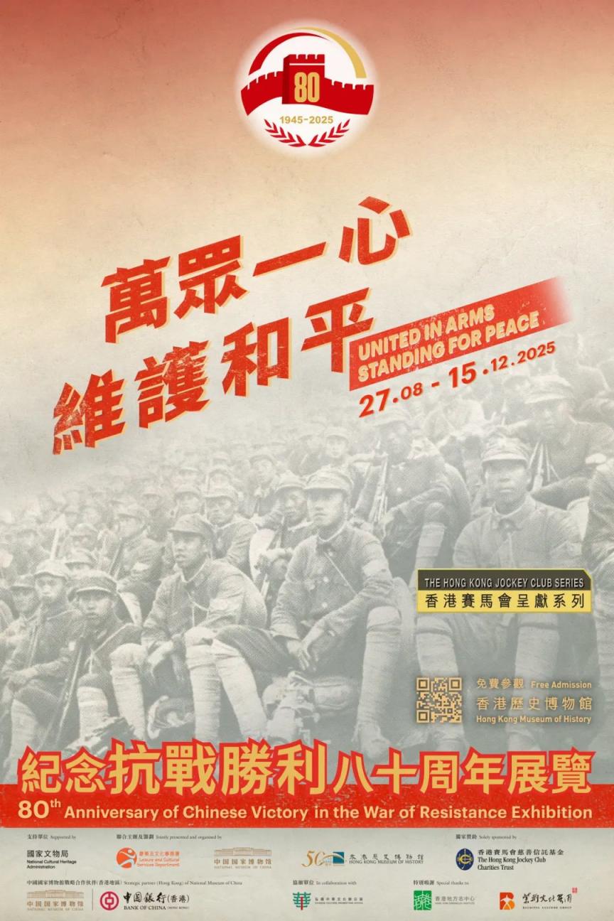 “万众一心 维护和平——纪念抗战胜利八十周年展览”由国家文物局指导,香港康乐及文化事务署、中国国家博物馆联合主办,香港历史博物馆、中国国家博物馆联合筹划,在中国国家博物馆战略合作伙伴中国银行的支持下,预计8月27日至12月15日在香港历史博物馆展出。共183件展品,其中82件由国家博物馆赴港展出,含8件一级文物。其余101件由香港历史博物馆及本地收藏家暨文博单位提供,约60件首次在香港展出。参展的82件国博馆藏已抵港,策展团队即将赴港开展布展工作。在香港举办本次展览,旨在面向香港市民和赴港游客,引导大家铭记历史,珍爱和平,弘扬伟大的抗战精神,为实现中华民族伟大复兴而奋斗。